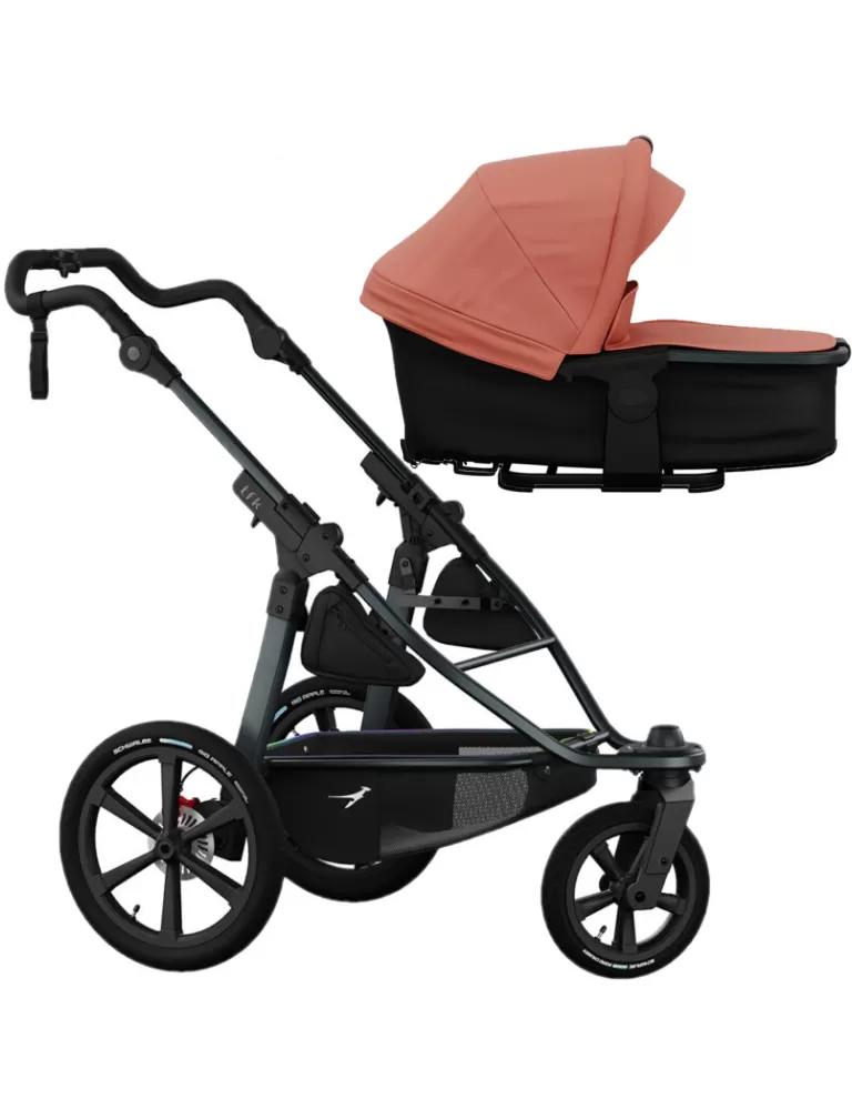Nový model tfk proA byl speciálně vyvinut a navržen pro všechny sportovně založené rodiče, kteří oceňují nejvyšší kvalitu ve spojení s promyšlenými funkcemi a vynikajícími jízdními vlastnostmi. Všechny detaily jsou navrženy tak, aby nabízely maximální pohodlí nejen dítěti, ale i rodičům. Ergonomická rukojeť usnadňuje tlačení, zejména při delších trasách, a uvolňuje namáhání paží. Kombinace 16" zadní kol a 12" předního kola, možnost vycentrovat přední kolo do přímého směru a lehký hliníkový rám zajišťují svižnou jízdu. Kompletně přepracovaný brzdový systém sestávající z integrované ruční brzdy, ruční parkovací brzdy ovladatelné jednou rukou a kotoučových brzd umožňuje rychlé, bezpečné a přesné brzdění i při vyšších rychlostech. Stručně řečeno, tfk proA nabízí „extra pro pro všechny běžce a sportovně založené rodiče a kombinuje maximální pohodlí a styl!
