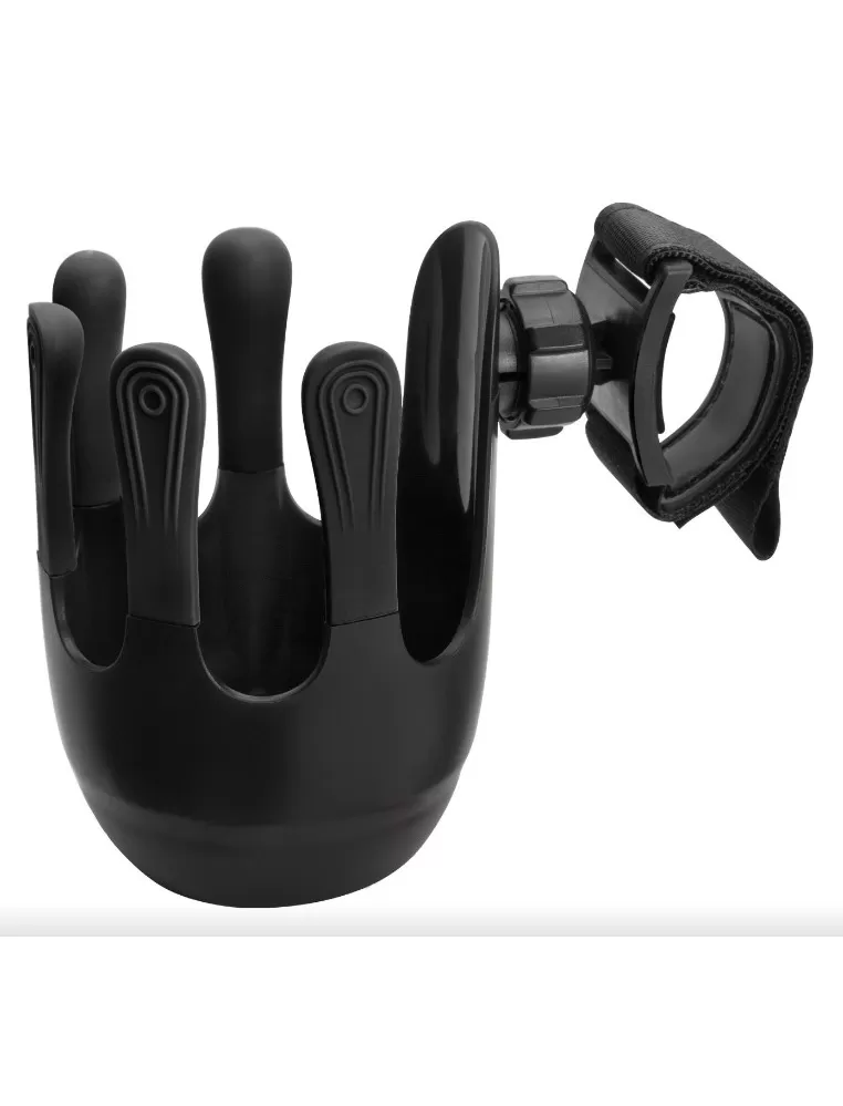 Flexibilní držák nápojů je navržený tak, aby se do něj vešly dětské láhve, kelímky s kávou i větší láhev s vodou až do průměru 8,5 cm. Systém s 360° rotací lze díky jednoduché instalaci pomocí suchého zipu připevnit na rukojeť téměř jakéhokoliv kočárku. Unikátní, moderně vypadající pětiprstý systém zajišťuje lepší stabilitu kelímku nebo láhve, zabraňuje tak nechtěnému vylití nápoje.